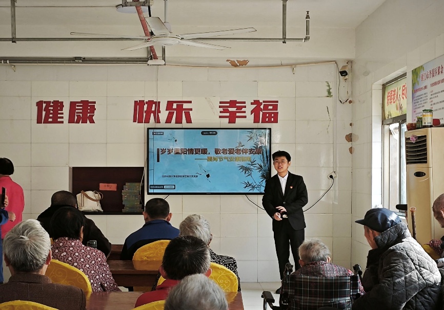 10月28日下午,在重阳节来临之际,江苏科技大学理学院学生第三党支部党员走进镇江市西簏郁金香怡养院,开展“岁岁重阳情更暖,敬老爱老伴安康”主题党日暨志愿服务活动。支部党员与40余位老人共迎重阳佳节,以青春之力传递敬老温度。