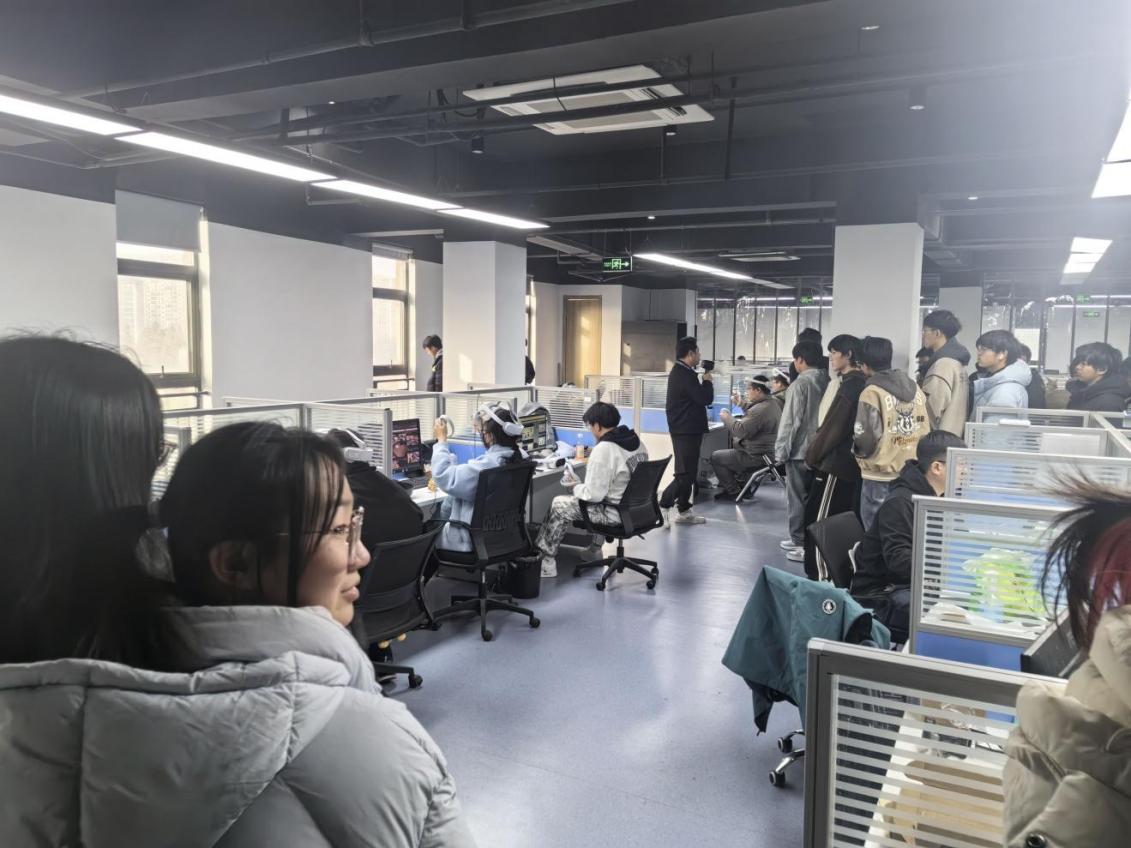 在企业实践观摩环节,同学们跟随讲解员进入镇江嘉创网络科技有限公司,了解企业情况、企业文化和企业理念,对工作环境有了初步认知。同学们现场观看了数字化平台的运作演示,近距离了解前沿技术在产业发展中的应用场景,不少同学围绕技术原理、落地成效、应用前景等问题与现场工作人员交流探讨,在互动中深化了对“理论联系实际”的理解,深入了解专业所学在社会中的运用。