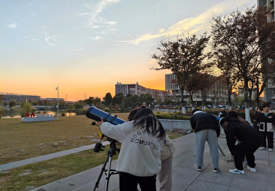 11月25日晚,“我与月亮有个约”天文望远镜观测活动在文理大楼南门如期举行。活动伊始,物理科技社团的骨干成员详细讲解了天文望远镜的结构原理、使用方法及安全注意事项,帮助同学们快速掌握观测技巧。观测环节中,同学们轮流通过望远镜近距离观测月亮。社团成员还现场解答同学们关于天文现象、宇宙奥秘的疑问,分享趣味星空知识。活动让同学们在亲身体验中加深了对光学与天文学的理解,极大激发了探索宇宙的好奇心与求知欲。