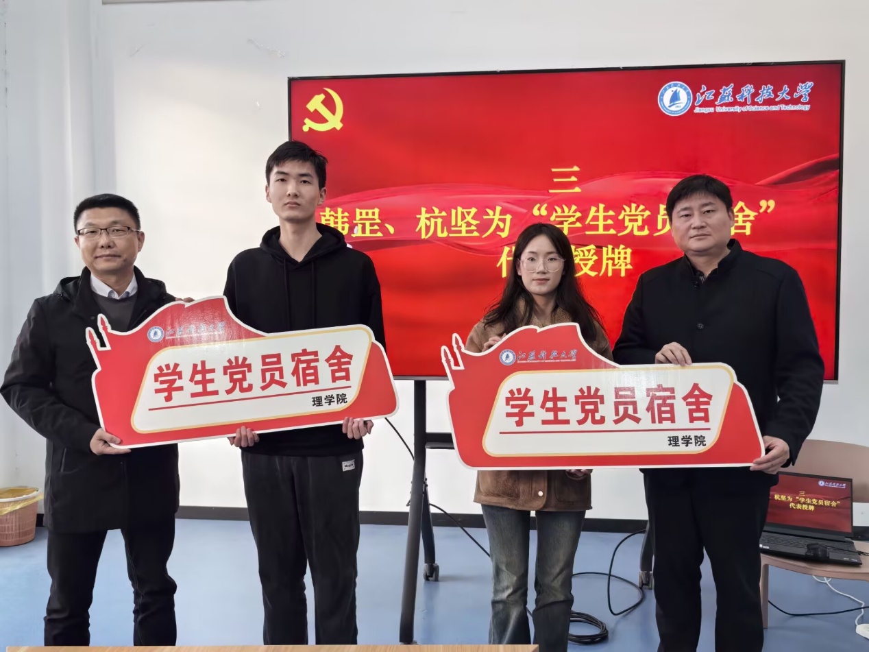 在随后举行的“学生党员宿舍”授牌环节中,审计处副处长韩罡、公寓管理服务中心主任杭坚共同为2025年新增党员宿舍的代表授牌。崭新的标牌,不仅是一份荣誉,更是一份沉甸甸的责任与担当,激励学生党员主动“亮身份、树形象、作表率”,将宿舍打造成社区建设的坚强阵地和前哨窗口。