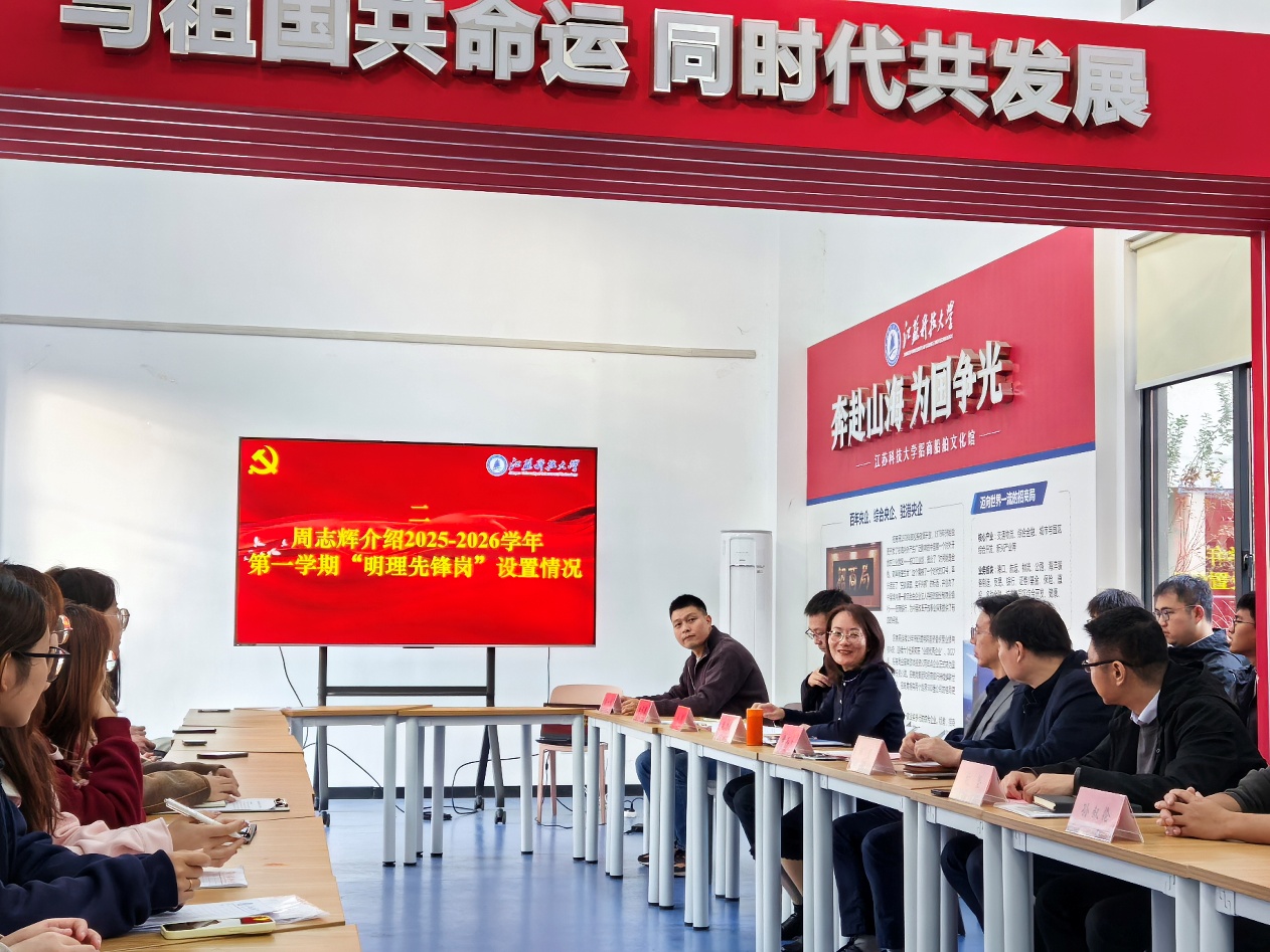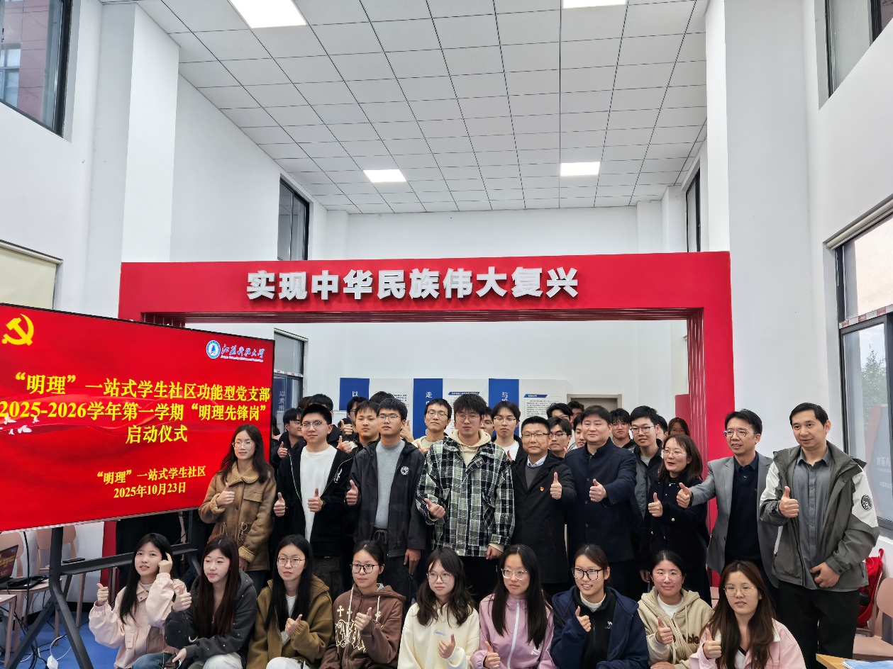 10月23日下午,理学院“明理”一站式学生社区开展2025-2026学年第一学期“明理先锋岗”启动仪式。学院党委书记徐文睿、党委副书记周志辉,审计处副处长韩罡,公寓管理服务中心主任杭坚等领导嘉宾,与功能型党支部书记、博士党员代表、生活指导老师代表及学生党员和入党积极分子代表齐聚一堂,共同见证了这一推动党建引领与学生社区建设深度融合的重要时刻。仪式由笃行功能型党支部书记贡一鸣主持。