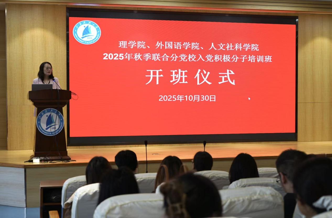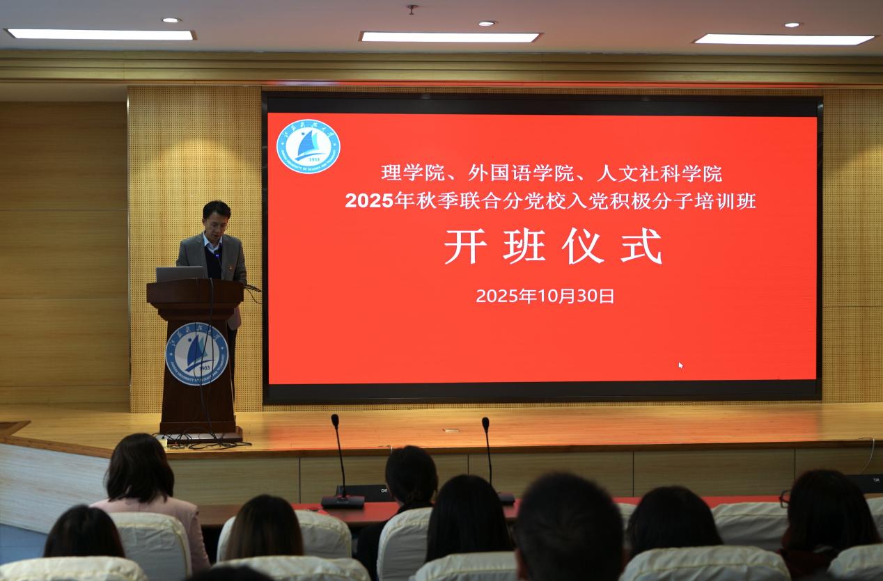 为深入学习贯彻习近平新时代中国特色社会主义思想,进一步加强入党积极分子培养教育,提升党员发展质量,2025年10月30日下午,理学院、外国语学院、人文社科学院联合举行分党校培训开班仪式。理学院党委书记徐文睿、外国语学院党委副书记赵莉、理学院党委副书记周志辉及各学院组织员以及培训班63名学员参加。本次开班仪式由周志辉主持。